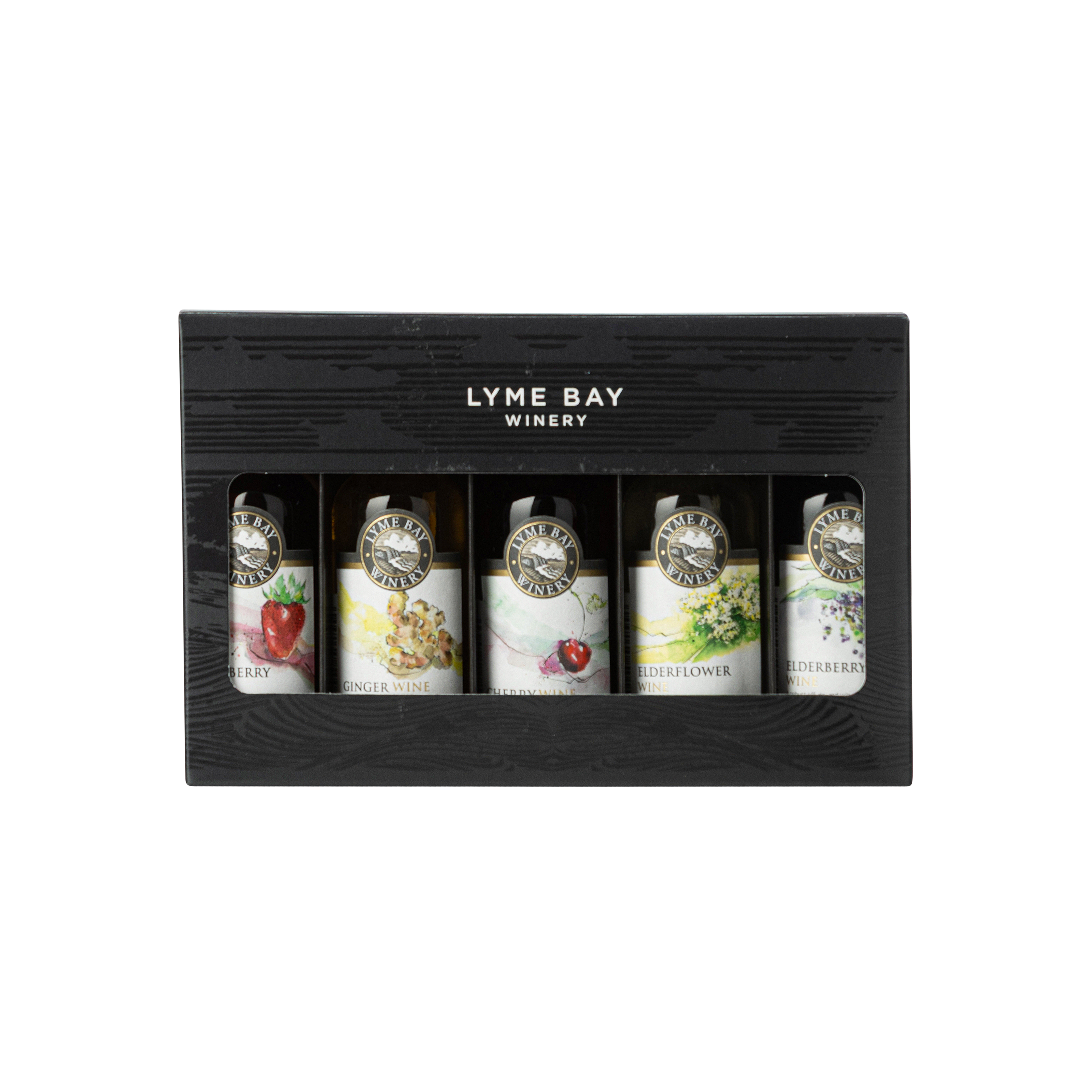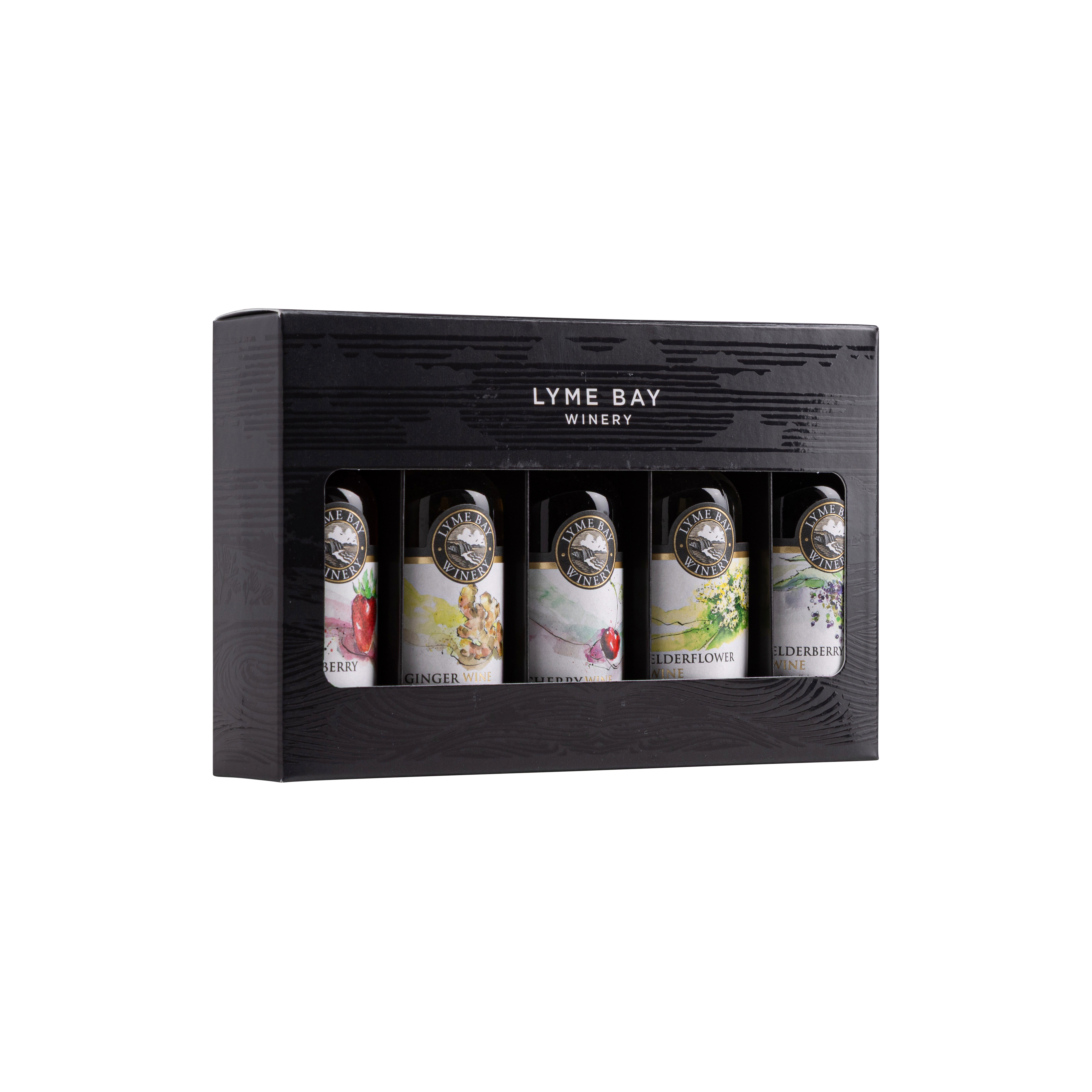 An attractive miniature gift box containing our winemaker’s choice of five best selling fruit wines. Strawberry, Ginger, Cherry, Elderflower & Elderberry in 5cl bottles.